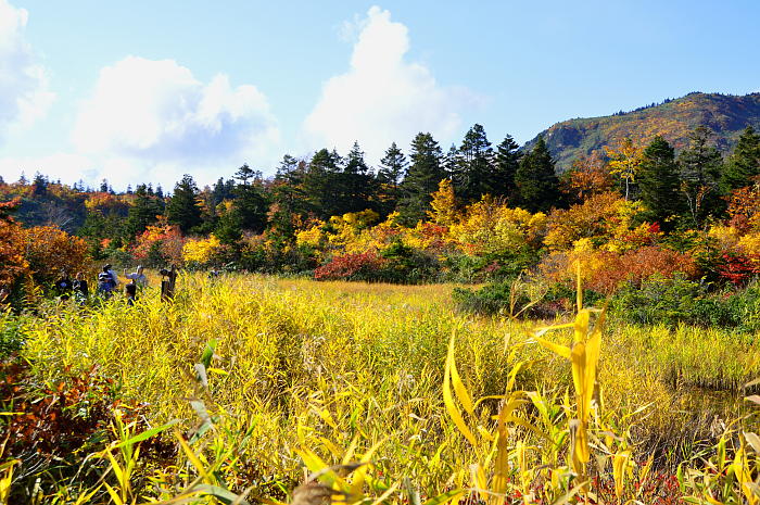 ・・・ ここに来て一気に寒暖の差が大きくなり、八甲田山系は 紅葉真っ盛りとなっています。 ちょうど八甲田を経由して十和田市へ行く用事があったので 睡蓮沼に立ち寄って紅葉の写真を写してきました。 入り口付近にはレンタカーナンバーの車がいっぱいで 地元ナンバーの車はほとんど見かけませんでした。 周辺を散策している方たちの多くは台湾や韓国の方たちでした。 ------------- The temperature difference has suddenly become larger, and the Hakkoda mountain range is now in the midst of its autumn foliage. I happened to be on a trip to Towada City via Hakkoda, so I stopped off at Suiren Pond to take some photos of the autumn leaves. The area near the entrance was filled with cars with rental car license plates, and I hardly saw any cars with local license plates. Many of the people strolling around the area were from Taiwan and Korea. ------------- (注)