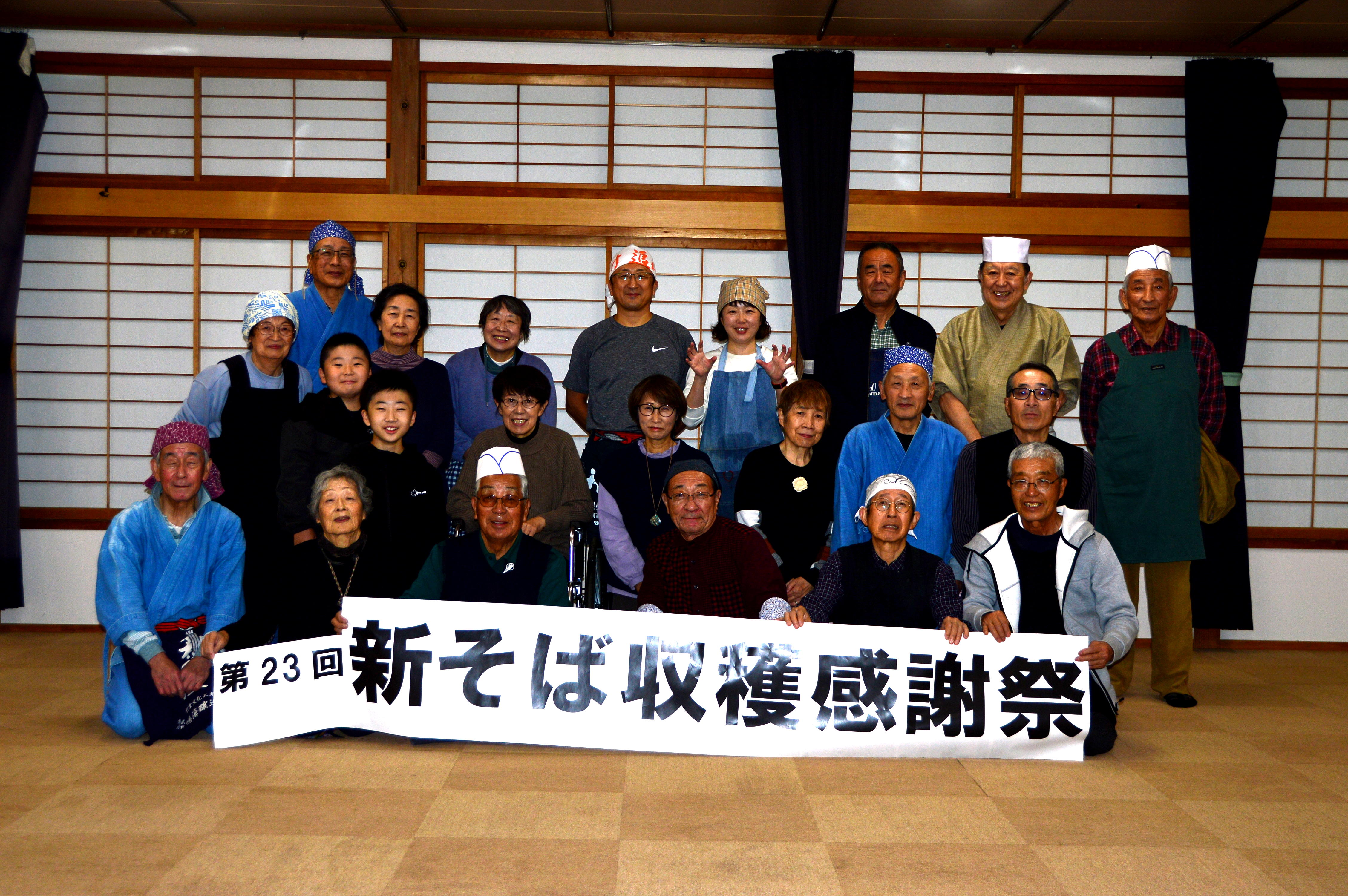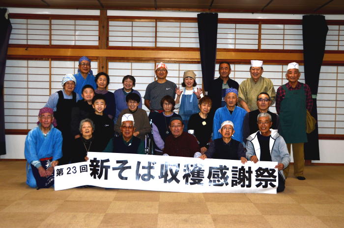 ![]() 今年は第23回目の開催となった「新そば収穫感謝祭」 終了後のメンバー(大画面表示) |